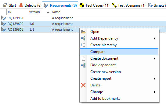 aqua offers the user the option to manage versions of all elements such as requirements, defects, test cases and test scenarios. This allows you to store auditable requirements, test cases and defects. It enables you to work with different versions of elements and to restore old document status of individual elements. Changes can be easily tracked by the software cycle and are displayed visually. New or alternative versions of elements can be managed.
