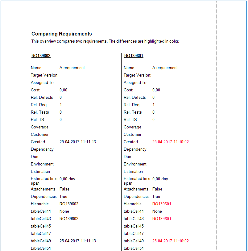 By selecting Compare in the context menu, aqua generates a so-called DiffReport which highlights the differences between two elements by means of colors. If the button is grayed out, you have to integrate the “DiffReports.aquarep” into aqua Reports.