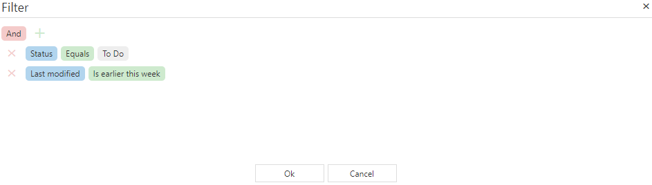 The first will open the filter builder, where you can select columns and values for the filter.