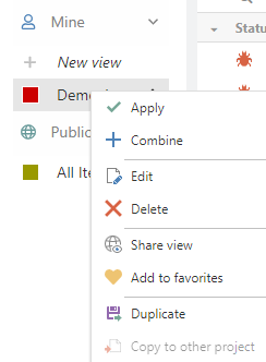 To mark a view as favorite, right-click it or click on the three dots next to it. A context menu appears, where you can select 'Add to favorites'. Here, you can also share the view (make it public) or duplicate it and copy it to other projects.