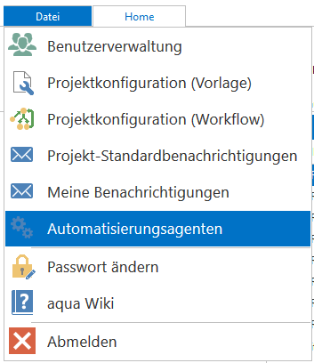 Dafür klicken Sie in aqua auf Datei und wählen "Automatisierungsagenten".