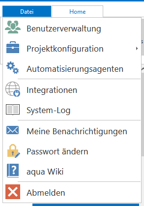 Um die Integration zu konfigurieren, wählen Sie bitte den Menüpunkt Integrationen im Datei-Menü aus.