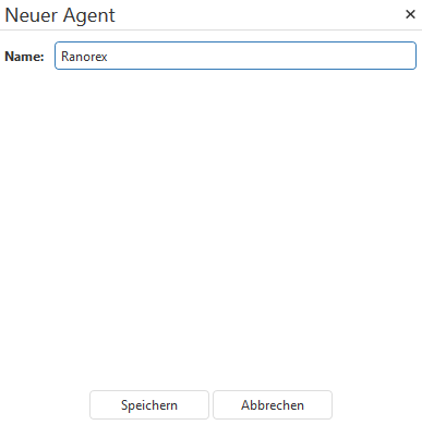 Klicken Sie auf Agent hinzufügen in der Ribbon Bar und wählen einen Namen für den neuen Agenten aus.