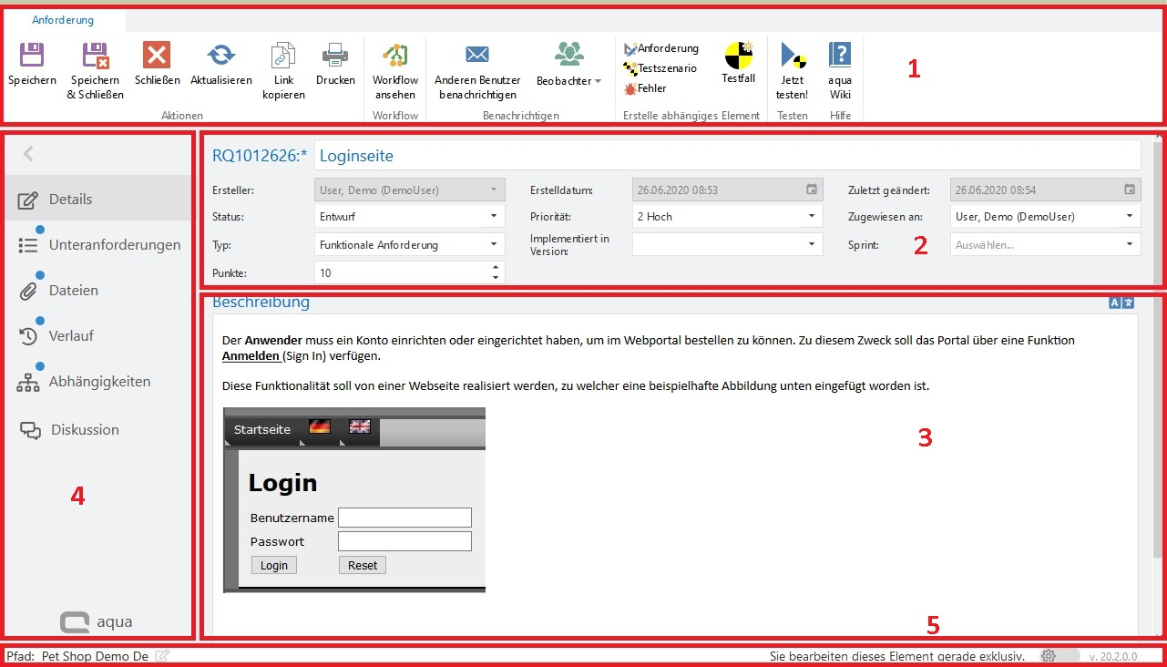 Wie die Elemente in aqua allgemein aufgebaut sind und wie sie erstellt und bearbeitet werden wird in folgenden Kapiteln im Detail erklärt: Erstellung und Anpassung, Benachrichtigen, Drucken, Abhängigkeiten, Dateien, Verlauf, Vorlagen, Diskussion.