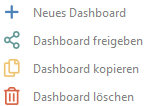 Über den mehr Button können Sie weitere Dashboards erstellen sowie das Dashboard freigeben, kopieren oder löschen: