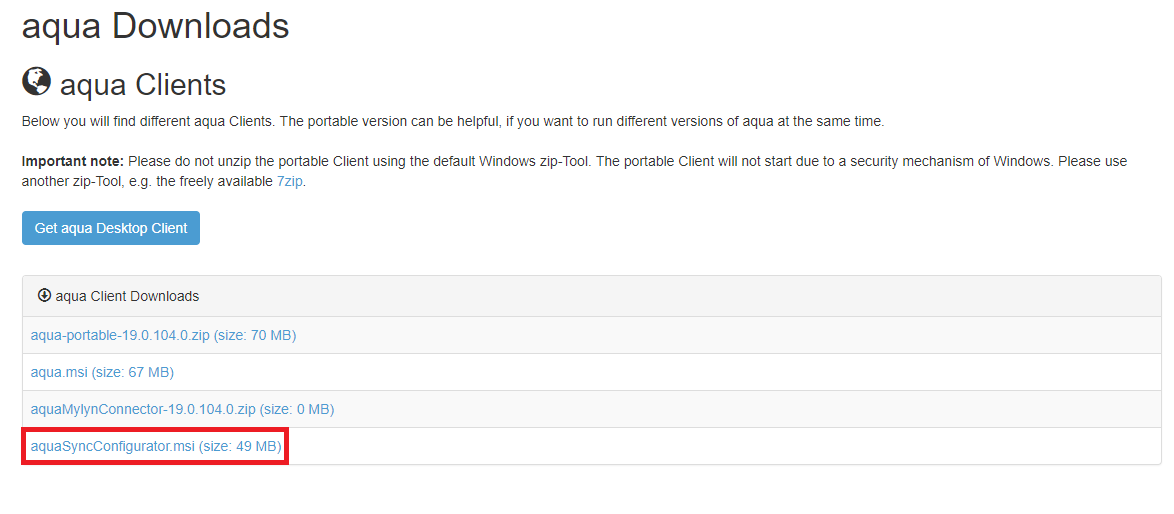 Sie können den SyncConfigurator von Ihrer Server Landingpage herunterladen. Starten Sie den Download, indem Sie auf den entsprechenden Link auf der Seite klicken.