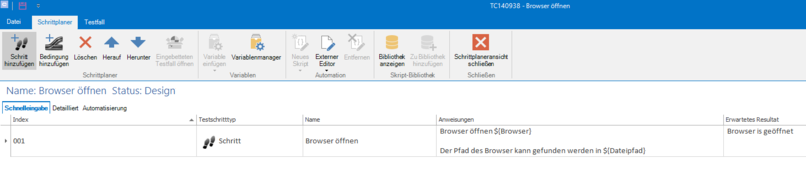 Für diesen Fall, lassen Sie uns ein schnelles Beispiel eines Szenarios erstellen, in welchem der Browser geöffnet wird (Setup), eine URL eingegeben wird (Hauptteil) und der Browser wieder geschlossen wird (Teardown).
