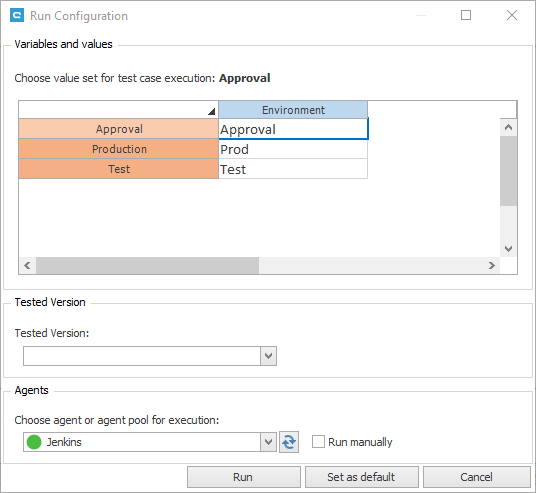 Hinweis: Wenn Sie Ihren Jenkins-Job parametrisiert haben, dann können Sie Werte von aqua nach Jenkins übergeben, indem Sie den Testfall in aqua ebenfalls parametrisieren. Der Wert wird automatisch an Jenkins übergeben, sofern die Variable den gleichen Namen hat.