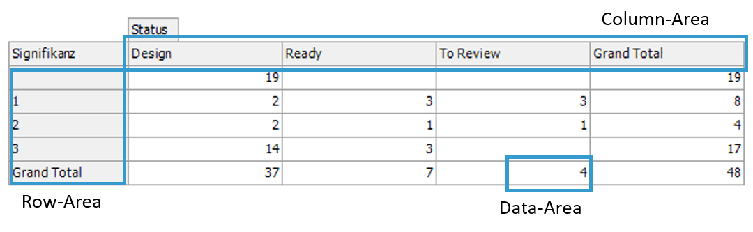Ein Feld "Column-Area", das auf Status konfiguriert ist, zeigt alle Status als Spalten an.
