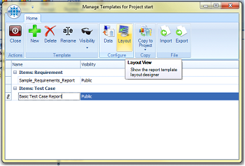 The layout designer enables you to adjust the report layout, to change the basis data used for a report, to import or export the report, or copy it to another project. The report template can be renamed, deleted, or its privacy settings can be changed.