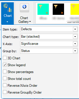 2nd step: choose a chart and click on it. Click on the Chart button to define item type and chart type and define the other fields classifying the graph.