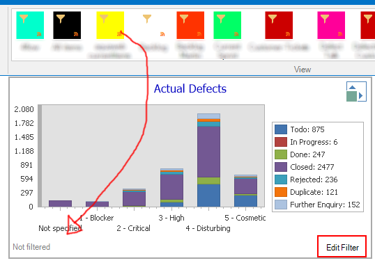 After having clicked on OK, the filter is displayed in the dashboard.
