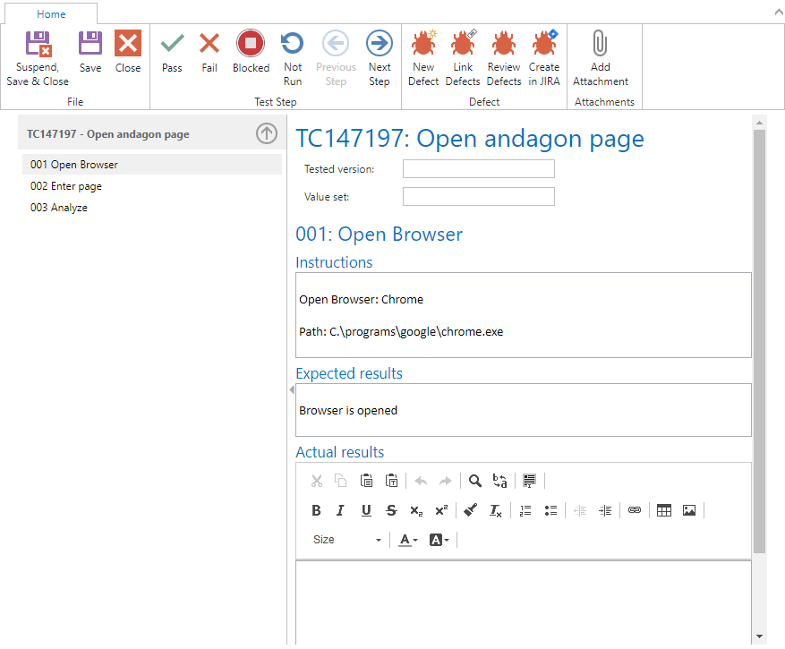 By executing the test case, the parameters and test steps are resolved automatically.