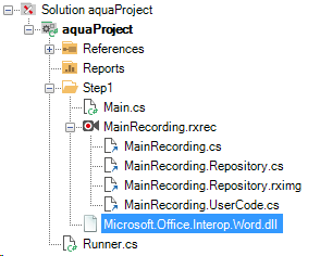 The csproj-file for editing and execution of test steps is built new every time according to the given test steps, to ensure the re-usability (keyword: script library) of test steps by aqua. Since several test steps are edited at once, it is hard to identify which reference belongs to which test step. To solve that problem, please proceed as follows: