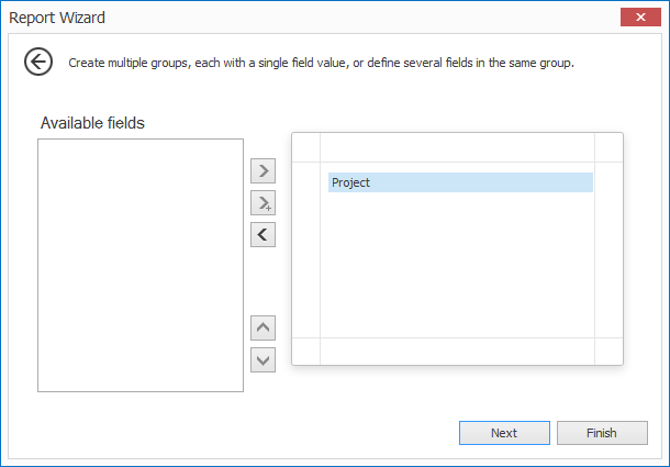 In this demonstration we will only create a Data-bound Report as it is the report wizard’s most commonly used feature . To begin with, we choose the project field to group the report by.