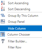 In order to create a view, make the grid look like you want it to. With a right click on a column header you can open the 'Column Chooser'. Here, you can drag & drop new columns to your view. You can also hide columns.