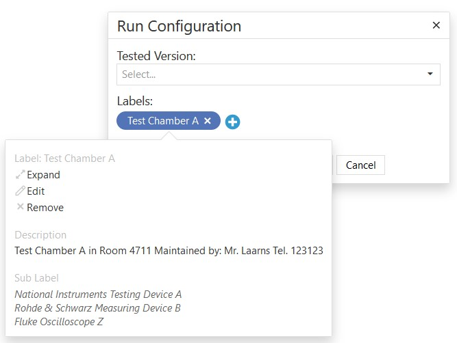 New labels can be added in the run configuration before the execution or in the execution himself. To add a new label klick on the and start typing to create a new label.