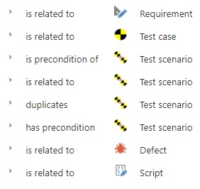 The different dependency types are for information purposes only and can be displayed in the dependency view as well as shown and evaluated in reports. In the following the possible dependency types for all item types in regards to all other item types are listed (in the tree view):