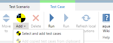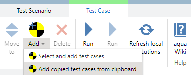 Now go back to the test scenario and select 'test cases' in the navigation bar. Click on the arrow below the 'Add' button and select 'Add copied test cases from clipboard' to insert the copied test cases.