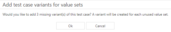 With the button 'Add missing value sets' all other variants of the test case can be added into the test scenario as individual test cases.