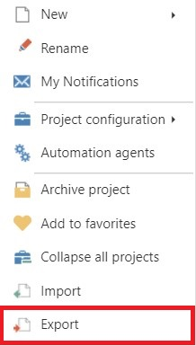 Using the context menu of a project or a folder, you can export all items of the selected project or folder as Excel file. In the same way, you can also use the context menu of one or more selected items to export the selected items.