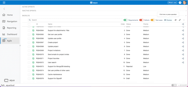 Step 1: Navigate to the backlog page and press the spacebar or click the preview icon.
