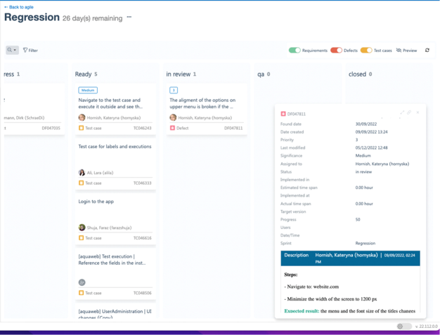 Step 7: On the scrum board, open preview the same way by clicking the preview icon or pressing the spacebar. You can switch between the tickets on the board and view the content just the way you can do it on the backlog page.
