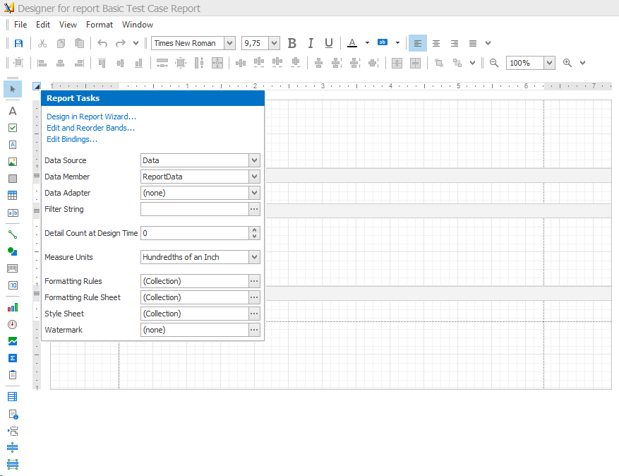 Creating an Empty Report will close the report wizard again. Creating a Data-bound Report will add some basic grouping and bands to your report. Creating a Label Report will add a panel in which all labels will have the same style.